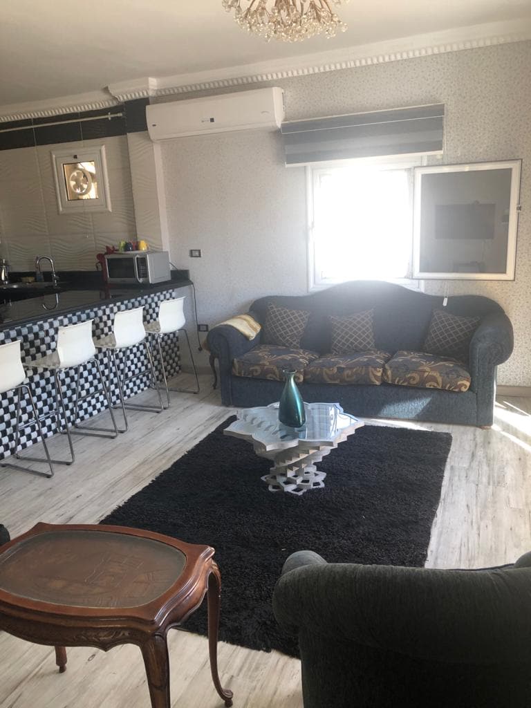 Exceptional and specious 1BR apartment located in luxurious compound in new Cairo near AUC University . Has a stunning view and equipped with all needed appliances. Furnished sofa bed with comfortable recliner chair. Specious big balcony Keyless Access Underground car parking slot is available Spinneys Supermarket is located in same building All facilities are near by such shopping malls, laundry, cinema & Banks Guest will have an amazing experience in lovely cozy Apt & stunning location