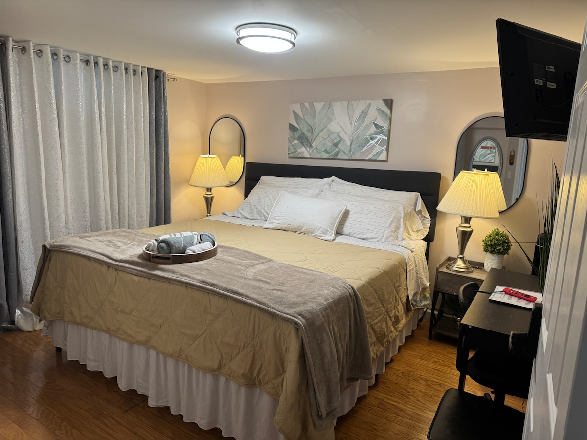 Dobro došli u apartman Serene Green! 20-25 minuta do Vašingtona i 10 minuta do stadiona Nortvest! Savršeno za samostalne putnike, poslovna putovanja ili parove koji traže udobnost, mir i stil. Opustite se u mirnom okruženju uz jednostavan pristup lokalnim popularnim mjestima i uživajte u prostoru dizajniranom za odmor i produktivnost. Sadržaji: ~Plišani bračni krevet (širine 150-179 cm) ~55" smart TV ~Mašina za pranje/sušenje veša ~Privatno unutrašnje dvorište sa sjedećom garniturom ~Čajna kuhinja i kafić ~Trpezarijski sto ~Parking na prilazu objektu ~Lokalni vodič Rezervišite sada za elegantan i opuštajući boravak!