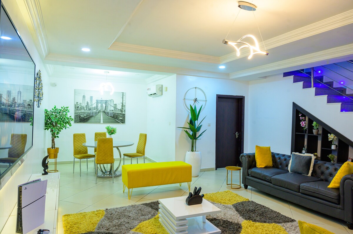 Opustite se u ovom mirnom, dizajnerskom jednosobnom stanu u Jahiju u Abuji. Sa toplim, zemljanim tonovima, udobnim salonom, privatnim balkonom i potpuno opremljenom kuhinjom, savršen je za parove, putnike koji putuju sami i osobe koje rade na daljinu. Uživajte u brzom Wi-Fi-ju, elegantnom enterijeru i mirnoj atmosferi samo nekoliko minuta od gradske vreve. Vaš moderni dom daleko od doma.