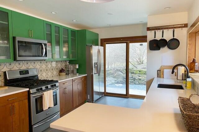 Ovaj dom je prelijepa mješavina udobnog i modernog. Svideće vam se da kuvate u kuhinji i uživate u pogledu sa terase na drugom spratu. Objekat je zapanjujući, sa širokim livadama i gustom šumom. Postoji 140 hektara koje možete da istražite i iskoristite za događaje kao što su venčanja ili odmarališta. Na vrhu imanja nalazi se jezerce od pola hektara sa jezercem i potokom za pastrmke koji se proteže duž dna. To je sve čemu ste se mogli nadati u Ketskilsu, smještenom s pogledom na grad Ande.