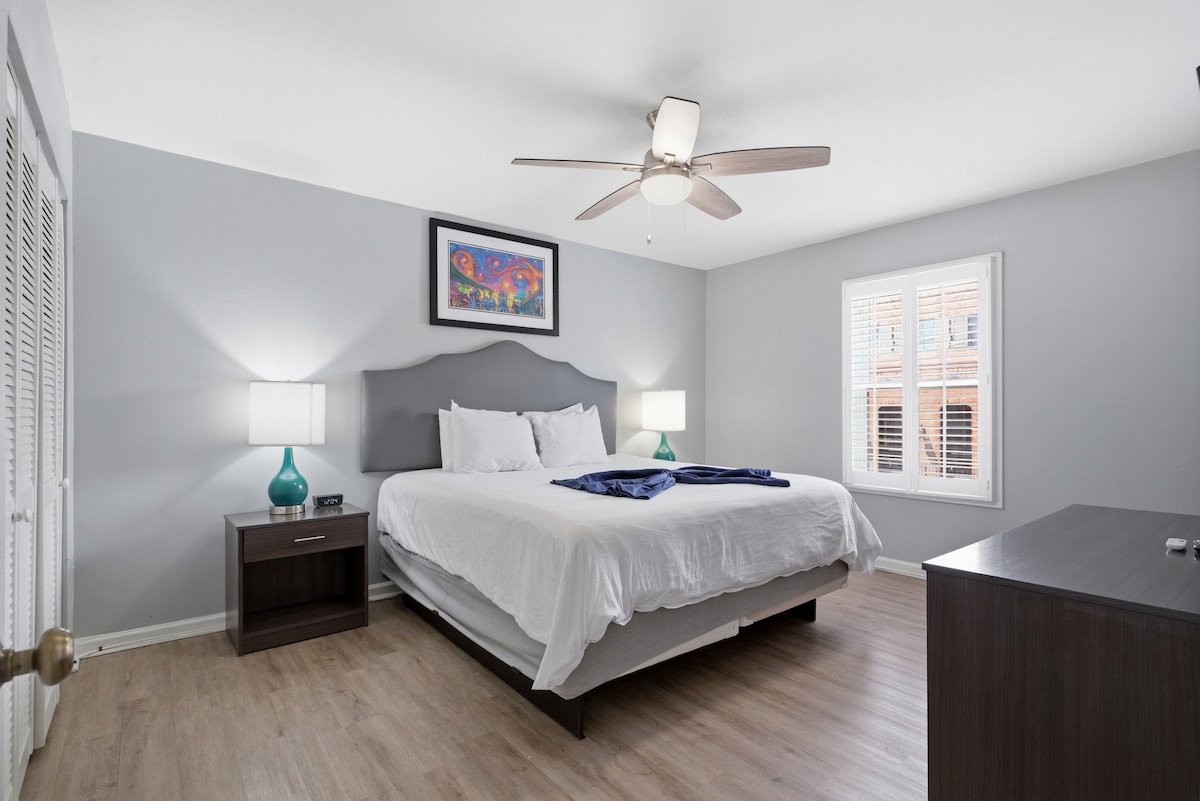 Charming first-floor 1BR retreat on Frenchmen Street with a private entrance, full kitchen, cozy living area, fast Wi-Fi, and access to a shared pool, hot tub, garden, and balcony. ADA-compliant and wheelchair accessible. Paid parking off premises. This space is on Frenchmen Street, in the heart of New Orleans’ live music scene. Because of this prime location, guests should expect to hear music and street activity, especially in the late evenings and on weekends.