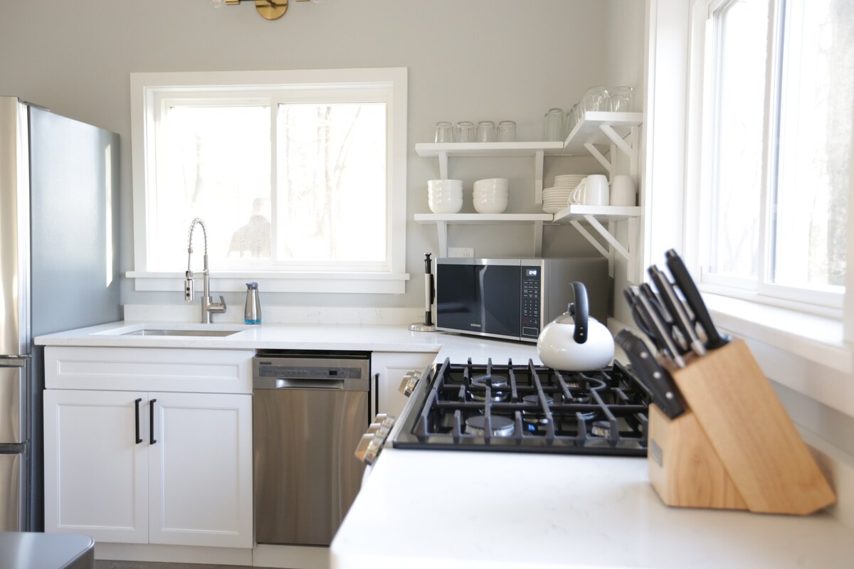 Pobjegnite u mirnu seosku kuću smještenu na grebenu Šavangunk. Opustite se pored kamina, uživajte u privatnoj infracrvenoj sauni (sa direktnim pristupom unutrašnjem dvorištu) ili se opustite napolju na terasi od prirodnog kamena sa ognjištem i pogledom na šumu. Izrađen s pažnjom - od stogodišnjeg stola od recikliranog drveta do odabrane „značajne biblioteke” i skrivenih poruka - ovaj prostor poziva na mir, znatiželju i povezanost. U blizini staza, jezera i lokalnih avantura. Pažljiv, udoban i tih i nezaboravan.