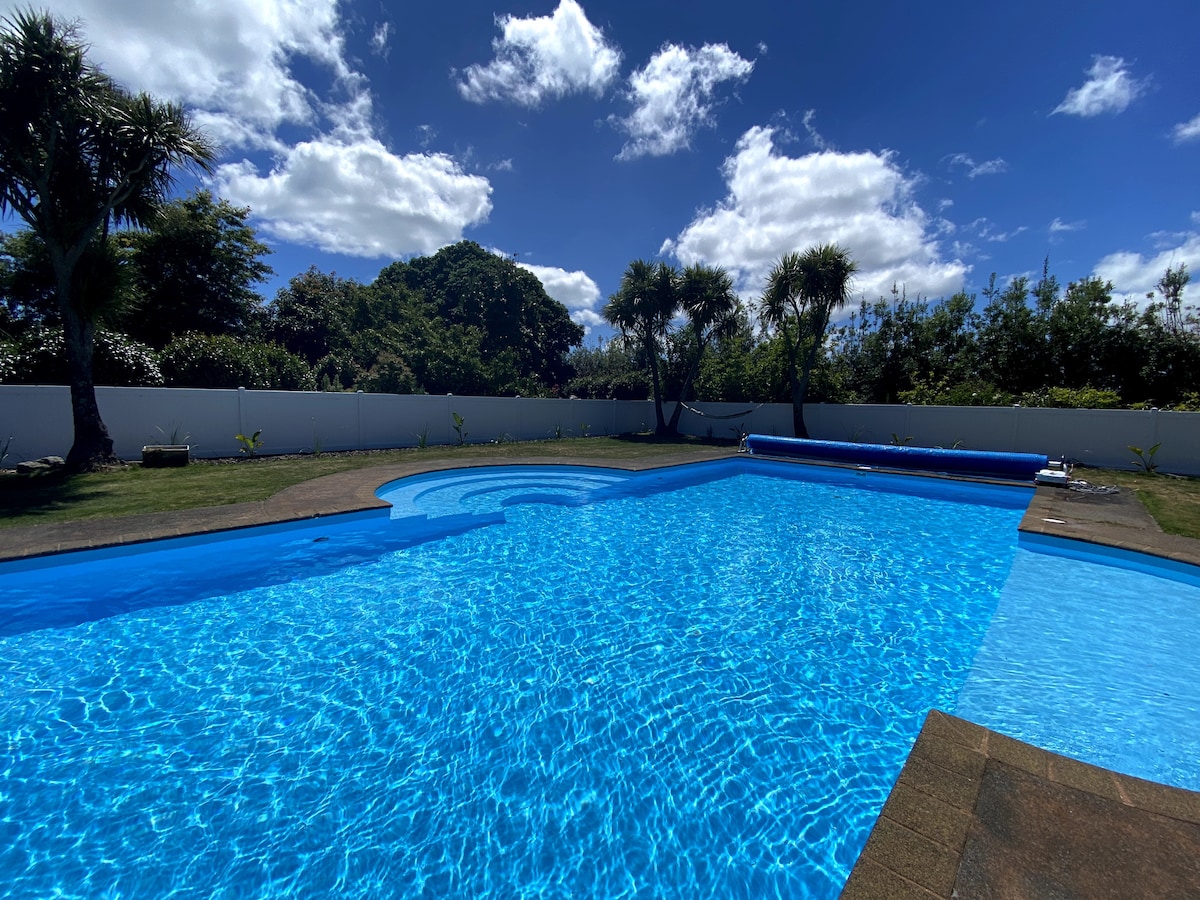 Listowel is a cosy, little cottage nestled amongst lush tropical flora, and a salt water swimming pool... simply stunning on a hot summers day. Our guests are able to take the opportunity to slow down and relax in their own private patio, where they are free to enjoy a nice beverage at the end of the day. Listowel is only a short walk to local shops, parks, New Plymouth CBD, the hospital, our beautiful coastline, and is located in Westown. 🌻 Relax ~ Enjoy ~ Have fun 🌻