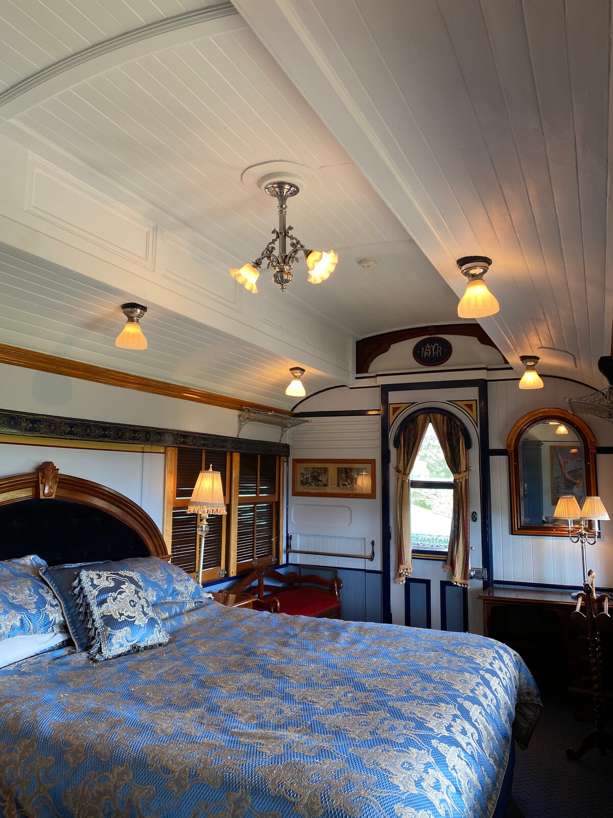 Step back in time (100 years) and stay in a one-of-a-kind luxurious 2 bedroom train carriage. The Queen Mary inspires a glamour of yesteryear, with a captivating allure that is hard to describe. 15 minutes walk from Pokolbin Village, The Queen Mary features original bedrooms and hallways as well as a beautiful club lounge style dining area with kitchenette which opens onto a private veranda with outdoor lounges. This train is located on our property - The Station Hunter Valley.