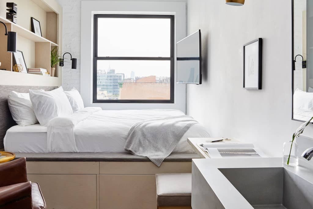 Spend your time in New York City relaxing in a chic studio in the heart of one of New York’s coolest neighborhoods. The arty, laid back ridge is your go-to, hidden away on the ever-eclectic (and noticeably less touristy) Lower East Side. Enjoy the breathtaking skyline views from our rooftop and the commodity of our communal kitchen and work-space basement. The small but comfortable and chicly designed units will make you feel right at home and provide everything you need for any kind of stay.