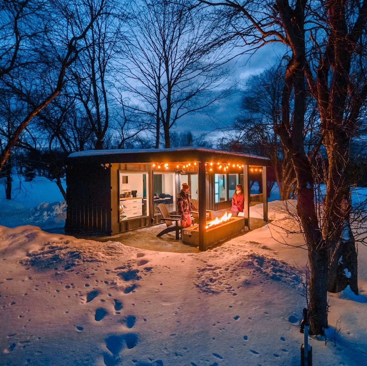 *Click on our logo to see our other cabins. The Field Cabin is a recently renovated 4-season shipping container cabin with a master bedroom, electricity, A/C, wood-fired hot tub, wood stove, furnace, indoor bathroom/shower, mountain views, patio, La Colombe coffee, gas grill, kitchen, and fire ring. Warm in the winter and cool in the summer, it sits on 20 acres, two hours north of NYC. Hiking, Woodstock, Kingston, Saugerties or the Hudson River 20 min away. As seen in Dwell, CNN, and Time Out.