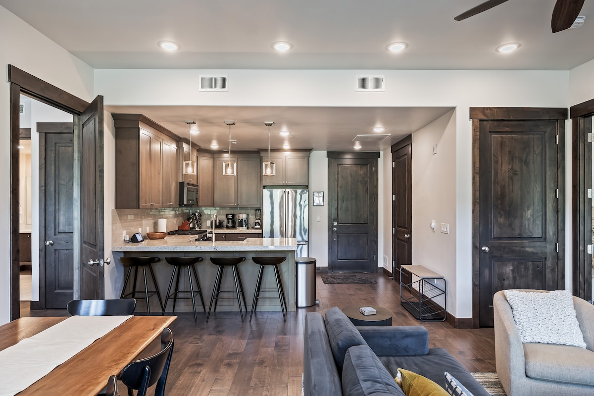 Get ready for all season adventures in the heart of Old Town Park City! This 2 bedroom / 2 bathroom condo (sleeps 6) is just steps from Park City Mountain’s Quit ’N Time run and Main Street’s dining, shops, and nightlife. Unwind with a full kitchen, private patio + BBQ, central A/C, and in-unit laundry. Stay connected with 600+ Mbps WiFi and remote-friendly work spaces. Enjoy off-street parking for 2 vehicles and thoughtful touches throughout that will make your mountain getaway unforgettable.