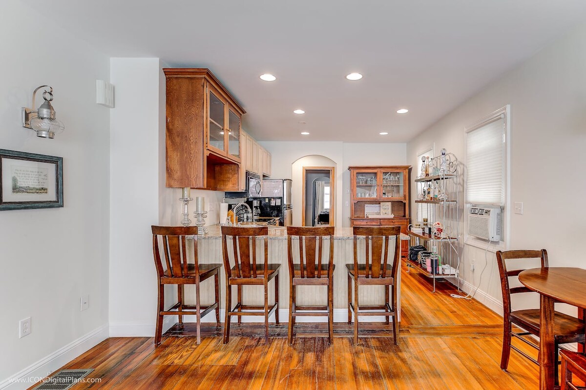 NEOPHODAN BORAVAK! Apartman sa 2 spavaće sobe u centru Njuporta, okrenutom prema Bellevue Ave/Memorial Blvd. 10 minuta hoda do Easton 's Beacha (1st Beach) i Cliff Walk-a. Pored restorana Pasta Beach, a preko puta Anni 's Cafe, CVS, A-Market, Tennis Hall of Fame, Empire State Cafe, Newport Creamery i još mnogo toga. Prošetajte 7 minuta i vi ste u centru Njuporta, da biste uživali u sjajnoj morskoj hrani u Bendžaminu, Crvenom papagaju, kući Klark Kok i lista se nastavlja. Nećete zažaliti!