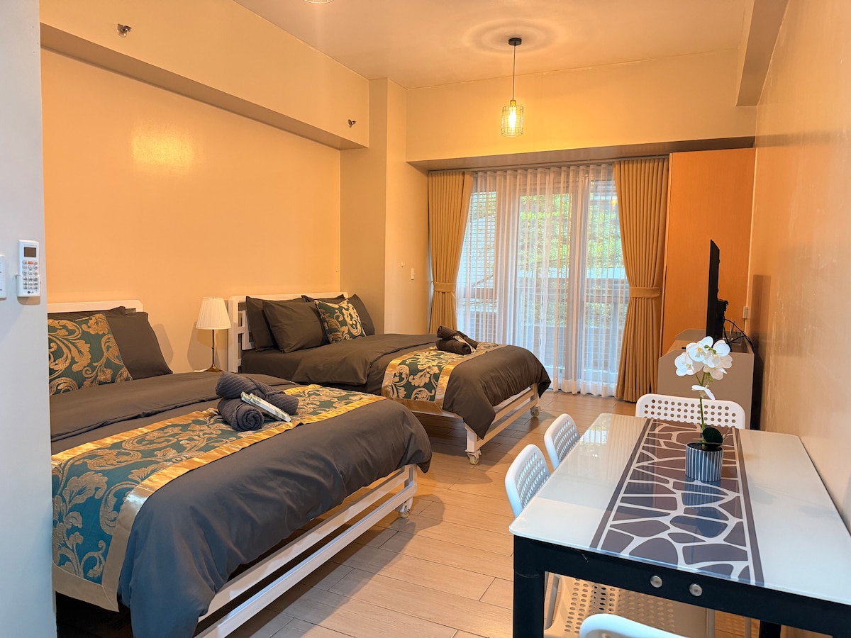 Za poslovne putnike ili putnike na odmoru koji traže alternativu hotelu, ali ipak žele vrhunski hotelski ugođaj. Studio se nalazi odmah preko puta terminala 3 na aerodromu NAIA i do njega se može stići kratkom šetnjom od aerodroma, delimično preko klimatizovane pešačke staze. Na kratkoj pešačkoj udaljenosti od garsonjere naći ćete restorane, prodavnice, uslužne delatnosti, kazina i barove sa živom muzikom. Kao gost, imaćete besplatan pristup velikom otvorenom bazenu, pametnom televizoru od 55 inča i Wi-Fi mreži od 100 Mbps.