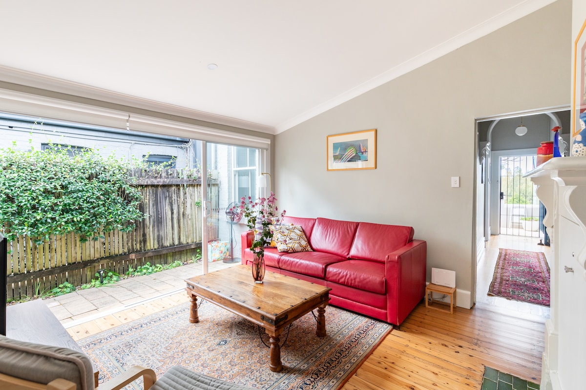 Mirna dvosobna terasa za 4 osobe. Samo 8 minuta hoda do popularne prodavnice i voza u Njutaunu. Samo 5 minuta vožnje vozom do luke Sidnej Predstavljamo: * 2 pune spavaće sobe s bračnim krevetima * potpuno opremljena kuhinja * unutrašnja mašina za pranje veša * prelepa, sunčana bašta sa atrijumom * odvojeni dnevni boravak i trpezarija * pametni TV sa Netflix-om itd. * Wi-Fi * 5-10 minuta hoda do centra Njutauna * u blizini javnog prevoza/železničke stanice * Mirna uska ulica sa parkingom koji radi non-stop.
