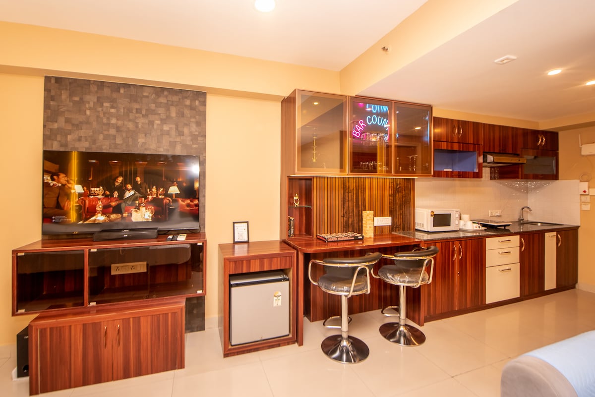 Uživajte u luksuzu u ovom elegantnom studio apartmanu koji se nalazi u blizini aerodroma i tržnog centra CC2. Savršeno za parove, porodice i prijatelje koji traže poseban odmor. Sa brzim internetom od preko 100 Mbps, ovaj stan je takođe idealan za one koji rade od kuće. Uživajte u pristupu bazenu i teretani u sklopu objekta, a ostanite povezani jer se objekat nalazi u blizini glavnih atrakcija: 6 km od Međunarodnog aerodroma Kolkata, 1 km od centra grada II i 2 km od Eko parka.