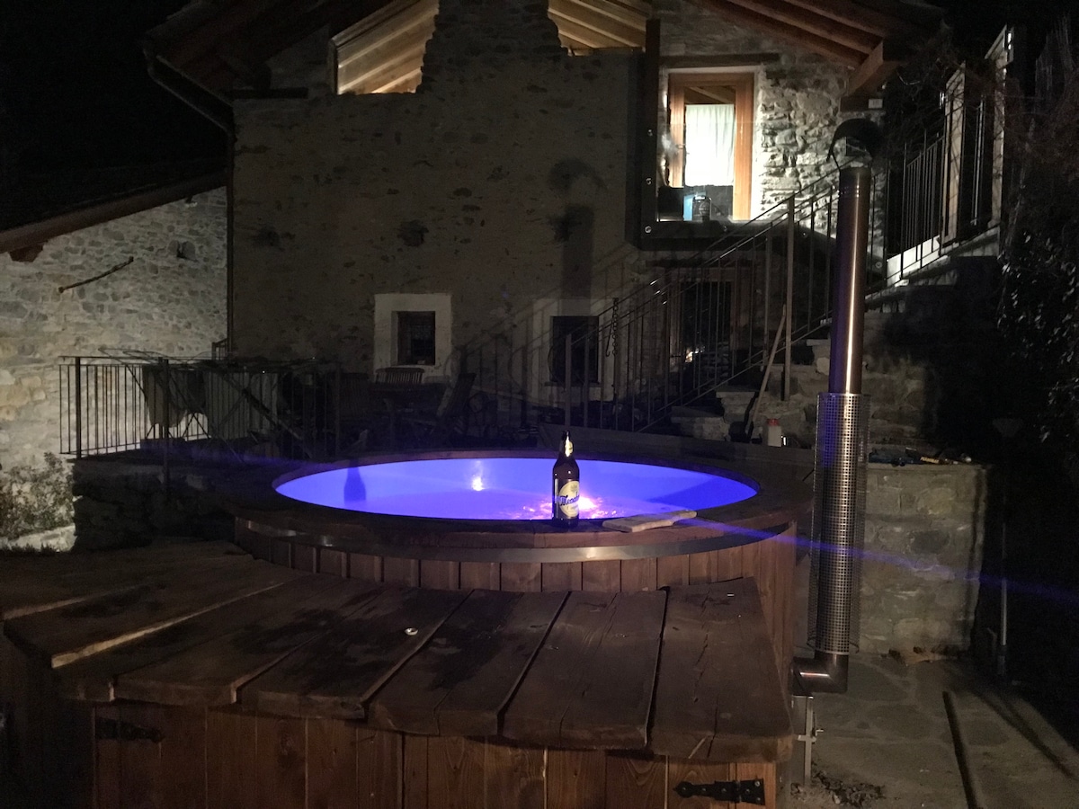 Alpe Mountains. Italija. Dolina Aosta. Brvnara u malom selu na 1600 metara,u miru livada, na ispaši krave i planine. Sneg (obično) zimi. Mjesto srca, s ljubavlju restaurirano očuvanje drevnih greda krova. Predivan pogled sa velikih prozora i poseban mir za one koji traže mir, toplinu i opuštanje. Nameštaj je veoma lep: pre svega drvo, ali i živahnije boje i savremena udobnost. Tihi izleti, i na krpljama ili na skijanju.