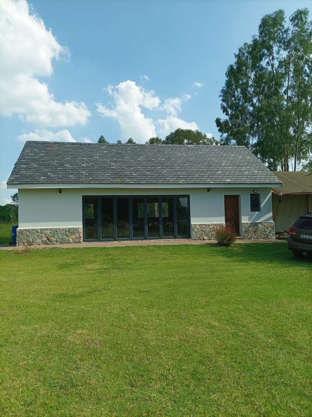 Opustite se u ovom mirnom, elegantnom prostoru na obali rijeke Vaal. Seoska garsonjera ima krevet i kauč za spavanje, kao i kameni kamin, potpuno opremljenu kuhinju, salon i trpezariju i kupatilo sa sobom. Seoska kuća se može rezervisati zajedno sa luksuznim šatorom iznad vode ili odvojeno.