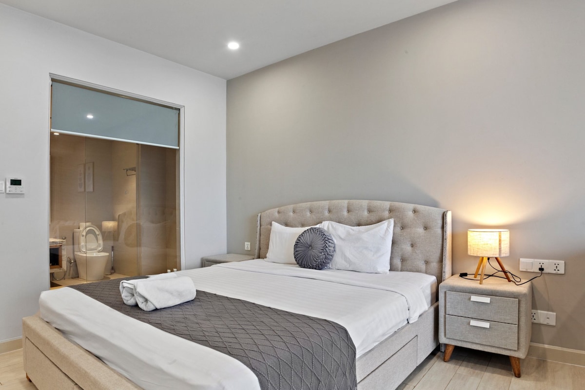 Stay in a stylish, fully equipped apartment in the heart of Nha Trang, just a short 2-minute walk to the beach. Set on a high floor in the Gold Coast building, the space is bright, airy, and designed for comfort — with a cozy bed, private balcony, and modern kitchen. Wake up to soft light, step out to the sea, and enjoy the city at your own pace. Perfect for couples, solo travelers, or small families, with easy self check-in.