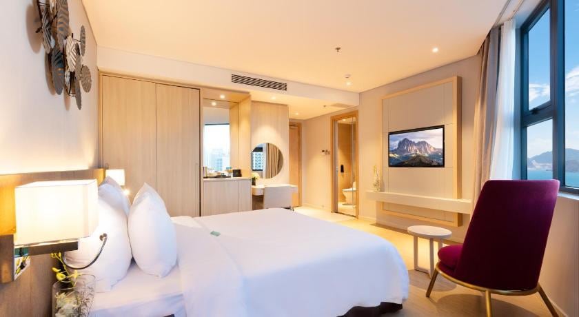 Stay at our 4-star hotel by the ocean in the heart of Nha Trang! Enjoy the outdoor jacuzzi, 24-hour front desk, and free Wi-Fi. Each room includes air conditioning, seating area, flat-screen TV with cable, safe, private bathroom with shower, toiletries, hairdryer, and a kettle. You’ll be steps from the beach, local eats, and nightlife—perfect for exploring the city. Just a heads-up: being in the lively center means you might hear a bit of Nha Trang’s vibrant buzz now and then.