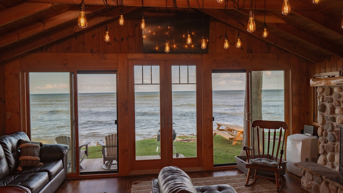 Predivna 4 sezone, privatna dvosobna kućica Knotty Pine Cottage koja se nalazi na obali jezera Mičigen udaljena samo 10 metara od vode u zalivu Sturgeon Bay, WI. 2 BR/1 seoska kućica za kupanje sa prelepim kamenom, kaminom na drva. Potpuno opremljena kuhinja sa trpezarijom sa visokim barom koji ima 8 mesta. Mnogo životnog prostora sa kožnim odjeljkom i kaučem u punoj veličini za 2 osobe, glavna soba za goste 1 sa bračnim krevetom i gostinjskom sobom 2 sa krevetima na sprat u punoj veličini, TV-om sa velikim ekranom, Wi-Fi mrežom i panoramskim pogledom na jezero.