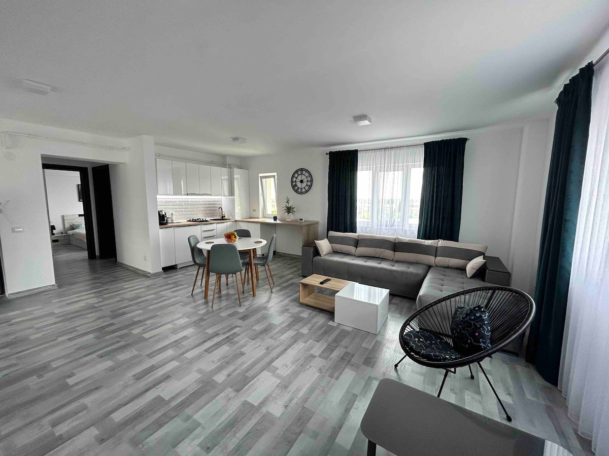 Ovaj moderan smeštaj je savršen za grupna putovanja. Stan se nalazi u blizini parka Nikolae Romanesku, nasuprot Lidla i 10 minuta vožnje od centra grada. U blizini se nalazi hitna bolnica Craiova, brojni restorani, apoteke, kaufland na 5 minuta vožnje automobilom. Objekat je opremljen posuđem, TV-om u dnevnom boravku, spavaće sobe su prostrane i imaju terasu, dnevni boravak je otvoren, a ugao se može produžiti.