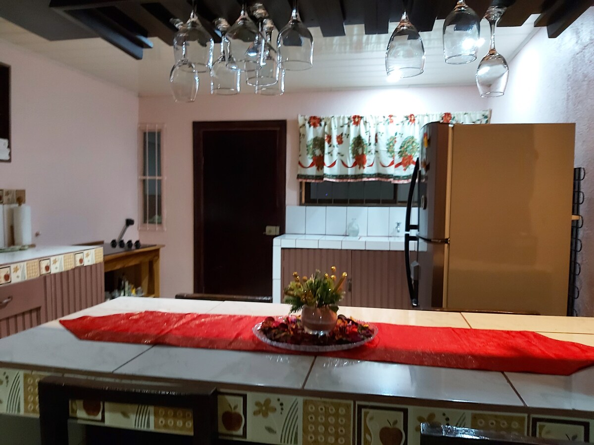 Ovaj moderan i stilski uređen dvosoban stan koji se nalazi u centru Jaco-a, nudi sve sadržaje koji su vam potrebni tokom kratkog odmora - savršen za grupu prijatelja, parove ili male porodice! Uživajte u pripremanju večere u svetli susednoj kuhinji, opuštanju na kauču dok gledate Netflix u svom dnevnom boravku otvorenog koncepta ili istražujete živopisno i živahno okruženje prepuno surferskih plaža i noćnog života, sa lakim pristupom nacionalnim parkovima. Prostor takođe ima c