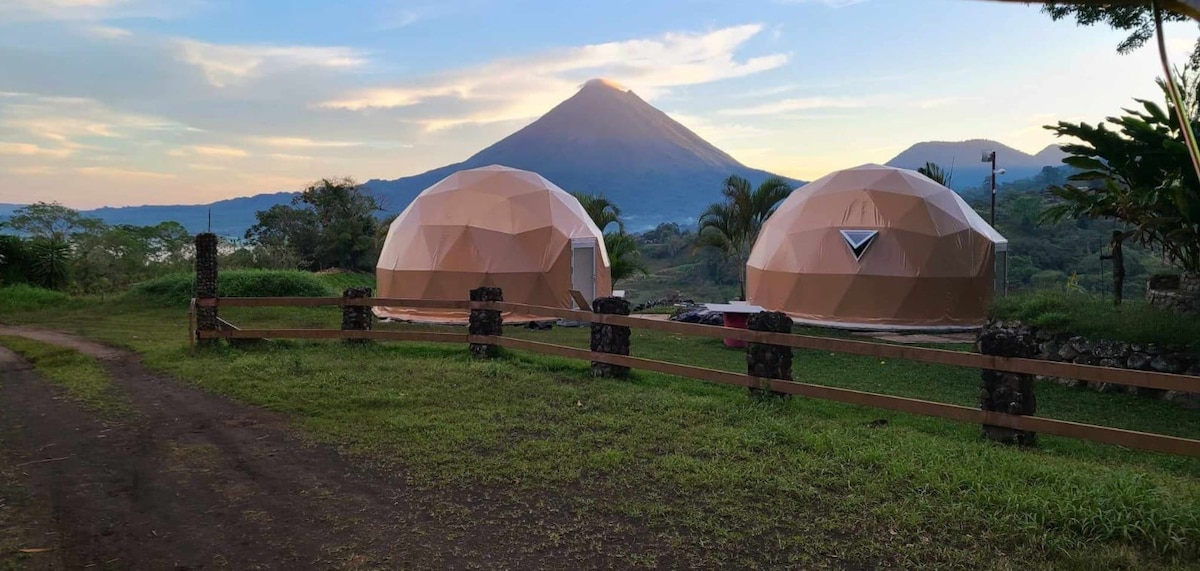 Looking for a unique glamping experience with a spectacular view? Reserve this luxury dome! Situated in the friendly village El Castillo de La Fortuna, with multiple good restaurant on walking distance and a magnificent view of the Arenal volcano and lake. The luxury dome is spacious, has a private bathroom with hot water, a kitchenette with fridge, coffee maker and a private terrace.