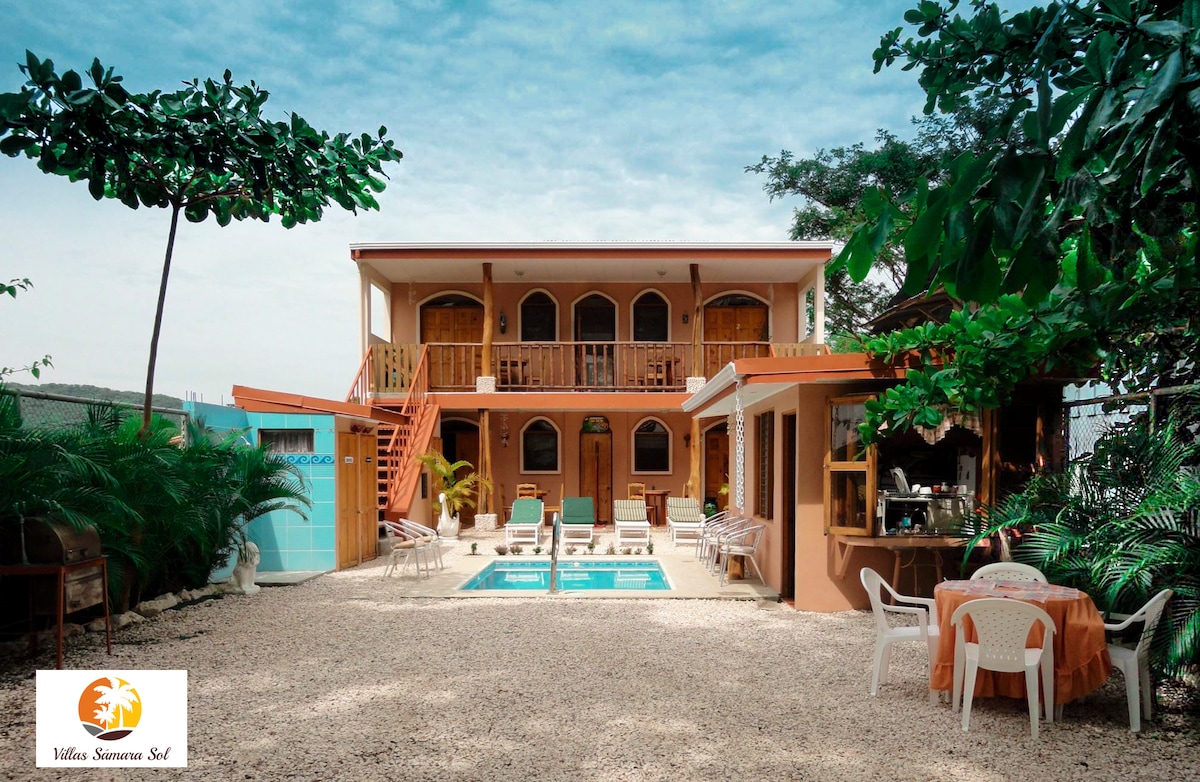 NEDAVNO RENOVIRANA šarmantna kuća „Sol y Luna“ 3 BDR SA PRIVATNIM BAZENOM, šetnja do plaže. Nalazi se na organskoj farmi od 60 hektara sa 24-satnim čuvarom. 3 spavaće sobe sa klima-uređajem i ventilatorima. Jahanje konja je dostupno na imanju. WI-FI internet u celoj kući. Velika terasa. Udobnai potpuno opremljena kuhinja. Odvojeno i privatno pranje veša. 5 min vožnje do mesta za surfovanje Plaja Negra i do Playa Avellanas, peške do Playa Lagartillo. 25 minuta vožnje do Tamarinda.