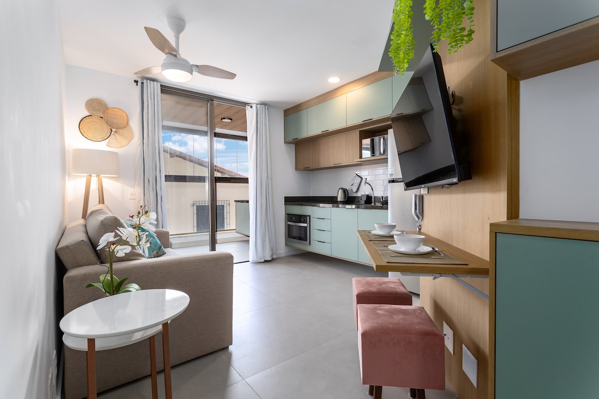 Dobrodošli u Encanto da Praia Camboinhas 302, moderan, udoban i potpuno opremljen apartman u apart-hotelu Porto Itaipu, smešten na jednoj od najpoželjnijih plaža u Niteroiju koja ima prelepi izlazak sunca! Savršen za porodice, parove, grupe prijatelja i poslovne putnike, stan nudi hotelsku udobnost uz udobnost doma – i prima do 6 osoba uz odličnu udobnost.