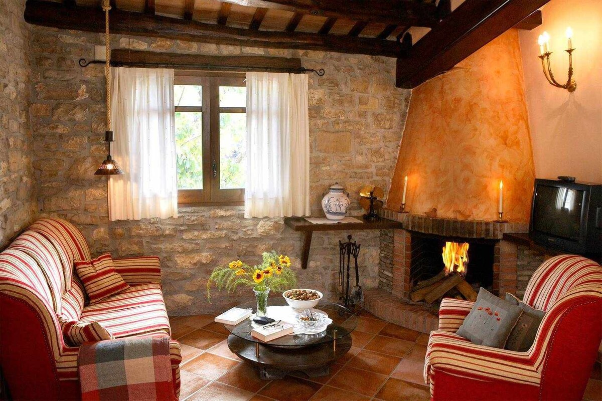 It is an old building where bread was made rehabilitated in a romantic house perfect for couples. In the same space, it has a double bed, fireplace, smartTV, dining room and equipped kitchen; Bathroom with bathtub. Outside there is a terrace, with a private barbecue and table to eat outside with views of the forest, corral and horses. Possibility of enjoying private sessions in the SPA, with waterfall and hydromassage. To share there is the garden with swimming pool and games room.