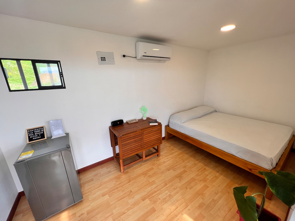 Apartaestudio monoambiente, cómodo e iluminado en el segundo nivel de la edificación, ubicado en el casco urbano del municipio de Norcasia - Caldas; con entrada independiente. El alojamiento se encuentra a 10 minutos caminando del parque principal de la localidad y a 10 y 25 minutos en vehículo del mirador y del embarcadero del Embalse Amaní respectivamente. El embalse es un atractivo turístico en donde es posible realizar múltiples actividades extremas y de contacto con la naturaleza.
