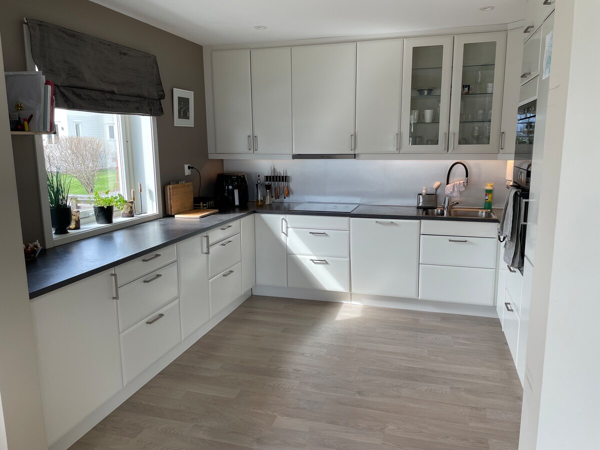 Fint lite hus med utrolig flott utsikt over sjø og fjell. Boligen ligger ved gåavstand til butikk og ca 4 min med bil inn til sentrum. Det er også gode muligheter for å gå på fjellet bare minutter unda huset. Bra uteområde samt stor veranda med vindfang, her kan kan sitte ute på kveldene og nyte utsikten. Er også stor gårdsplass med plass til flere biler.