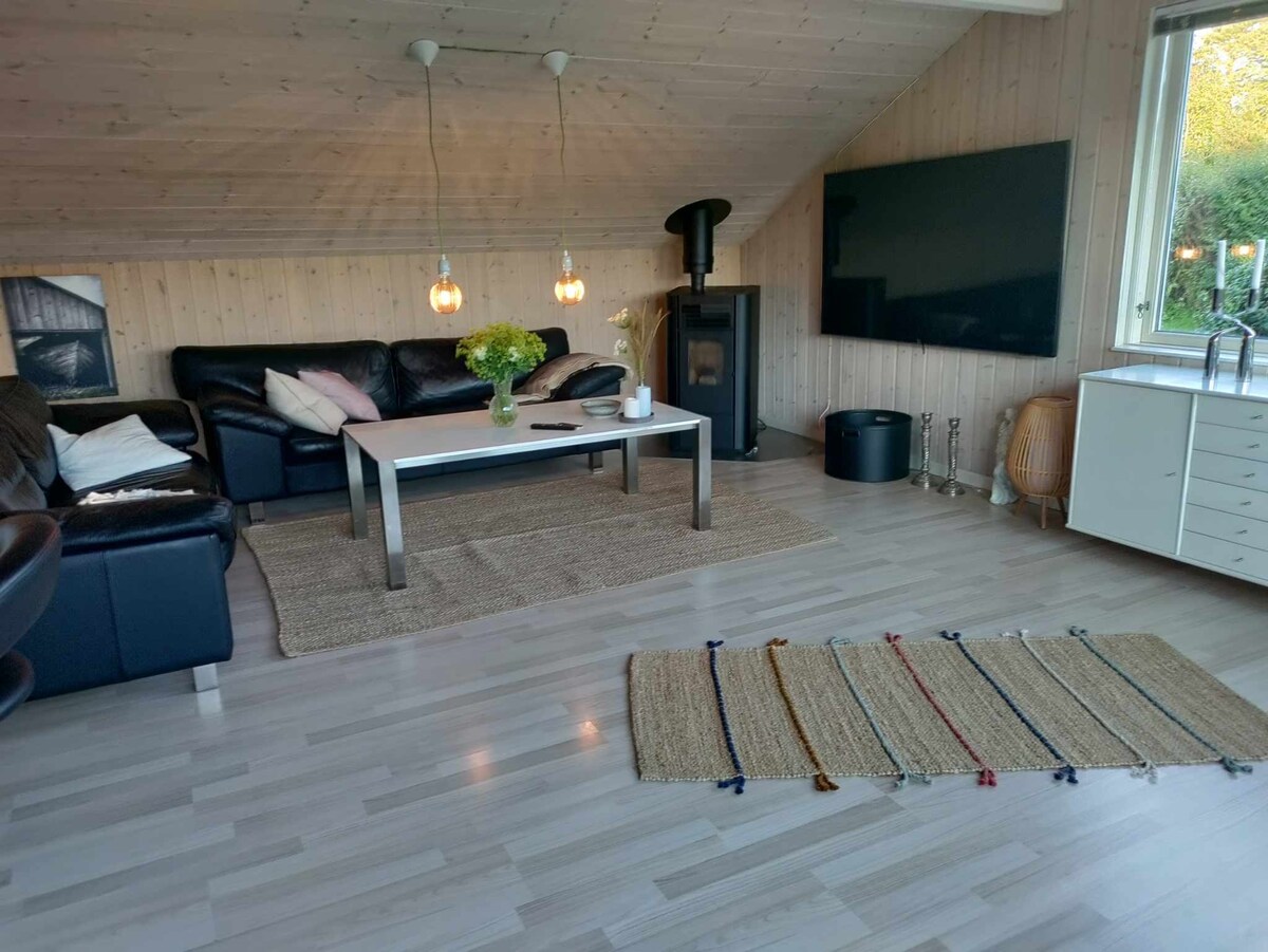 Dobro došli u našu jedinstvenu ljetnjikovac, gdje se arhitektura i lokacija podižu na viši nivo. Sa panoramskim prozorima i otvorenim, prozračnim prostorima, ova kuća vas poziva na udoban boravak za cijelu porodicu. Uživajte u impresivnim pogledima i prijatnoj unutrašnjoj klimi, zahvaljujući modernim akustičnim plafonima i efikasnom ventilacionom sistemu. U blizini plaže, šume i Arhusa. Wi-Fi Punjač za električni automobil Dostupna su 2 bicikla za istraživanje slikovitog okruženja Jedva čekamo da vam poželimo dobrodošlicu u našu kuću!