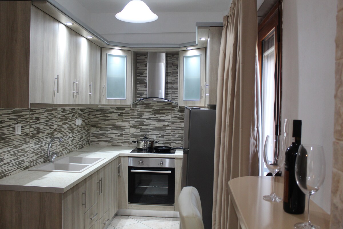 Kamena seoska kuća nekada seoska kuća nasuprot plaže sa konzervatorijumom i izuzetno nezavisnom kamenom sobom . Ima prostor za roštilj sa rernom na drva i veliki manastirski sto . Izaberite svoje povrće, smokve, kruške, grožđe, jabuke i breskve koje se nalaze u bašti. Jedite na plaži udaljenoj nekoliko metara od kuće u tradicionalnim ribljim konobama. Možete otići u selo i imati ouzo sa mještanima ,posjetiti termalne izvore, otići do slane jame i posmatrati ružičaste flamingose.