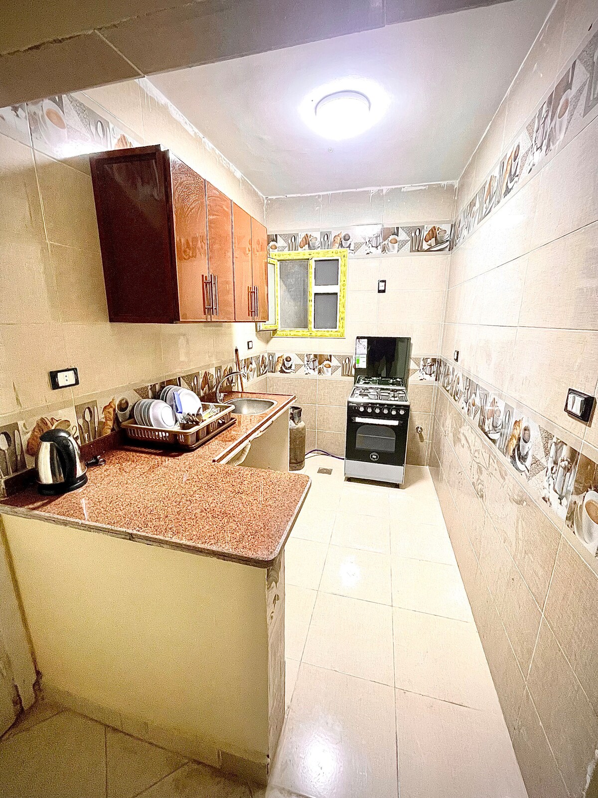 Cozy & bright 2 bedroom 2 bathroom chalet located in Cleopatra Resort in Al Alamein area kilo 86, it is 5 minutes driving to Marina and 10 minutes to New Alamein skyscrapers. 2 minutes to Zahran mall and 2:30 hours only from Cairo and 1 hour from Alexandria. The unit has a large private & fenced backyard overlooking the swimming pool and water slides. Cozy living room with satellite TV, large dining table, fully equipped kitchen, 2 bedroom sleeps 6 people. 2 full bathrooms. 2 washing machines.