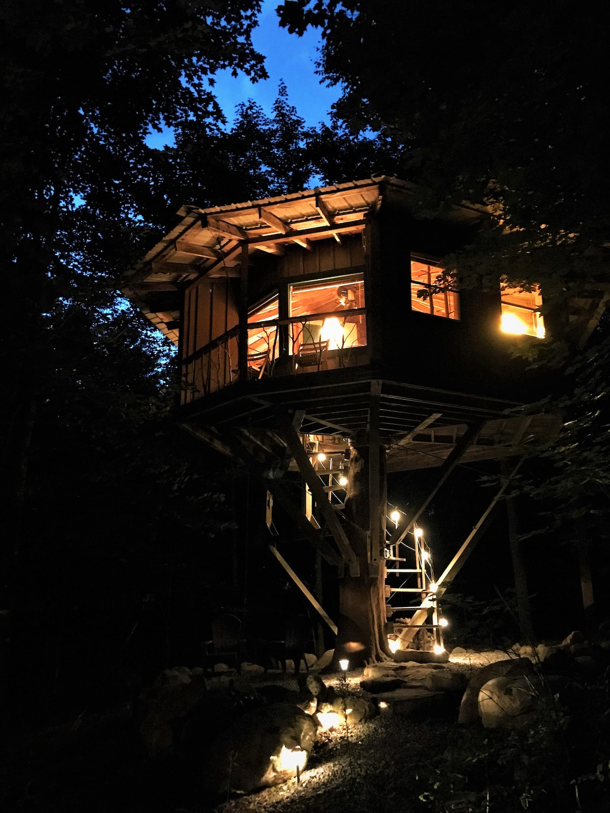 Spavajte na drveću u našoj udobnoj kući na drvetu. Ovo mesto je savršen bazni kamp za vašu sledeću avanturu ili jedinstveno mesto za sklupčanje uz dobru knjigu. Savršeno mesto za boravak u šumi, ali ne i izolovano. Pripremite obroke u obližnjoj kući za kuvanje (udaljenoj 40 minuta, bez grejanja) na šporetu za kampovanje ili preko otvorene logorske vatre. Grijano kupatilo/tuš je udaljen 20 minuta. Obezbeđujemo posteljinu, posuđe i pomoć u planiranju putovanja. Objekat obuhvata kilometre planinarskih staza i prelepih mesta za istraživanje!