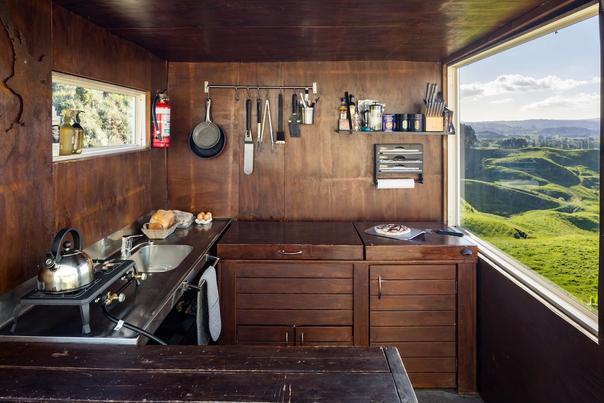 Doživite život izvan mreže samo 4 km od zaliva Kit i 12 km od Raglana. Ovaj romantični kućni autobus nalazi se u polju na mirnom imanju od 35 hektara sa prelijepim pogledom na obalu i okean. Uživajte u kadi na otvorenom, tostirajte sljezove kolačiće iznad ognjišta i opustite se na velikoj terasi. To je pravo utočište za romantičare, ljubitelje prirode i avanturiste. Isključite se, napunite baterije i ponovo se povežite sa onim što je važno.