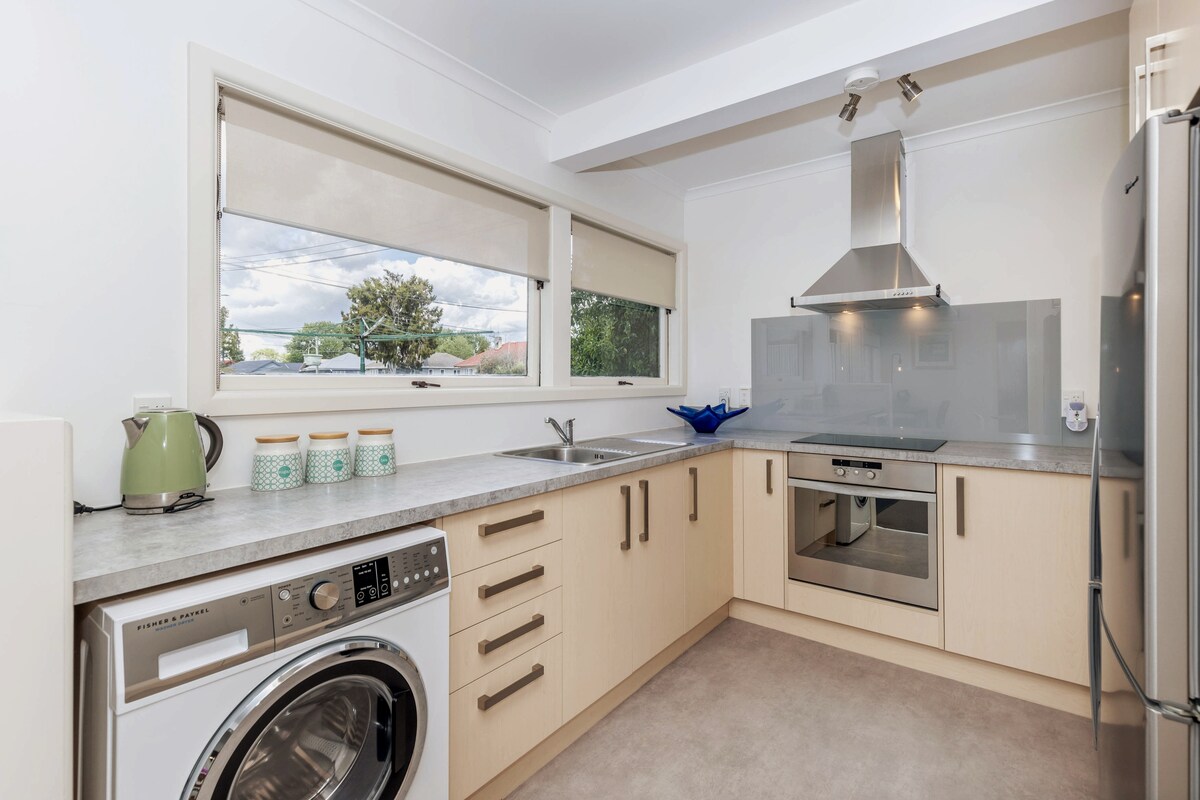 Ovaj novi dom je idealno mjesto za opuštanje nakon cjelodnevnog skijanja, planinarenja ili vožnje biciklom. Postoje 2 dnevne sobe koje dijele dvostrani požar na gas. Savršeno za skijanje ili romantično veče. Uživajte u zalasku sunca sa prednje terase ili potpuno ograđenog spoljnog prostora sa roštiljem, sjedećom garniturom i ležaljkama. Opustite se i uživajte u pogledu na planinu iz hidromasažne kade. Rijeka Mangawhero i biciklistička staza udaljeni su 1 minut hoda.