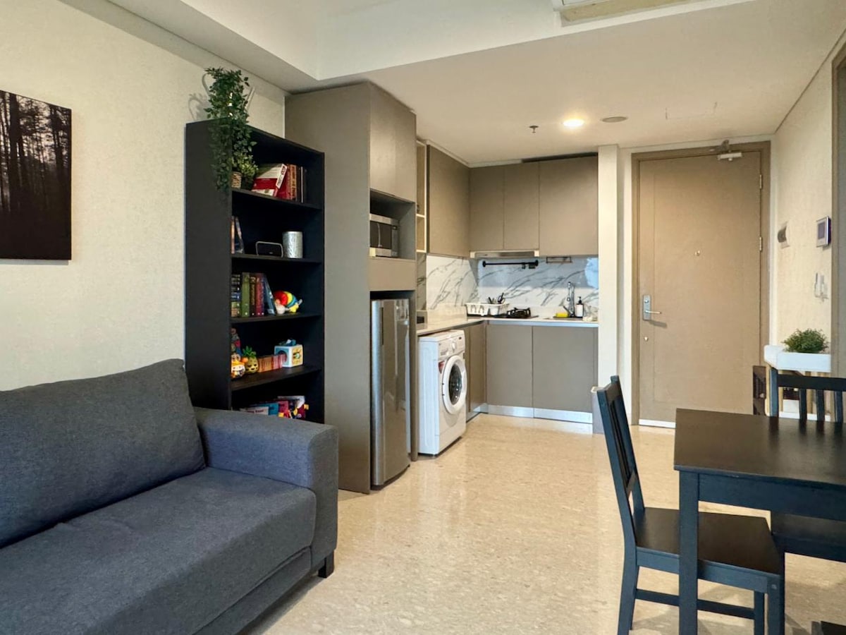 A spacious, cozy 1-bedroom apartment with a living room and balcony at Citralake Suites, West Jakarta's ideal lakeside getaway. Conveniently located just minutes from the Airport, PIK, Puri Indah and Sunset Avenue, it’s easy to explore the city. Step outside and you’re just a 1-min walk from Ciffest, a lively dining area with plenty of food options, supermarkets and ATMs. Our 1 BR unit provides a luxurious and comfortable space for up to 3 guests, with a kitchenette, Free Wi-Fi, and Netflix.