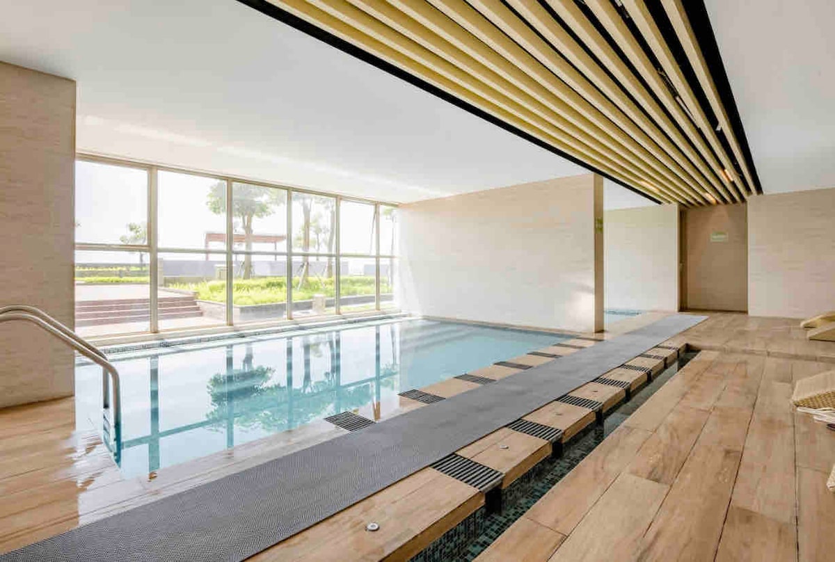 U blizini JIEXPO-a i JIS-a, naš studio u stanu Maplepark nudi modernu udobnost, brzi internet i Netflix. Raspored otvorenog tlocrta odlikuje se elegantnim namještajem, obiljem prirodnog svjetla i besprekornim radnim prostorima i prostorima za spavanje. Dobro opremljena čajna kuhinja i plišani prostor za spavanje osiguravaju udobnost i praktičnost. Uz jednostavan pristup događajima i privatni balkon s pogledom na bazen, ovaj studio kombinuje urbanu sofisticiranost sa prijatnim šarmom, što ga čini savršenim domom u srcu Džakarte.