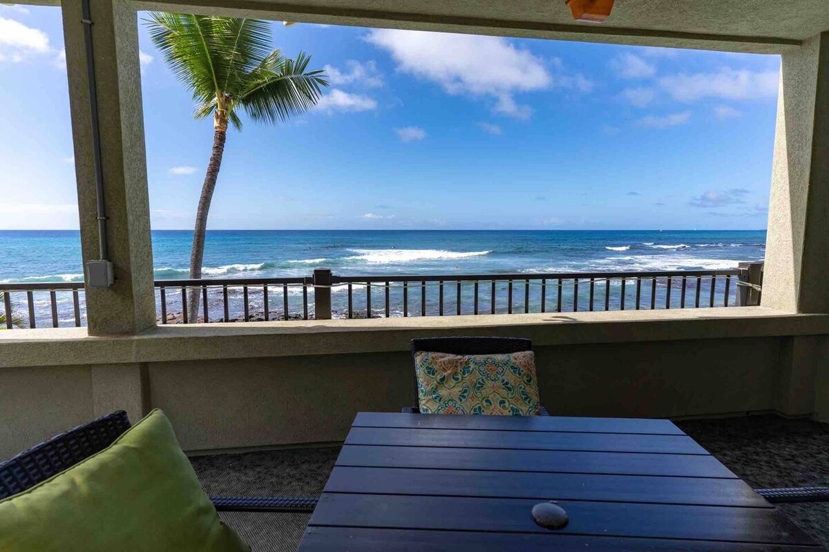 *Gorgeous views from oceanfront lanai *See whales, surfers, turtles from lanai *Beach/snorkel/surf right outside *4th Floor Penthouse w/ A/C *Stocked kitchen incl air fryer *Covered parking *Oceanfront Gas grill *Da Poke Shack in complex *Pack 'N Play/High Chair *Shared Pool w/ hot tub *Completely remodeled w/ split air unit & double vanity in master