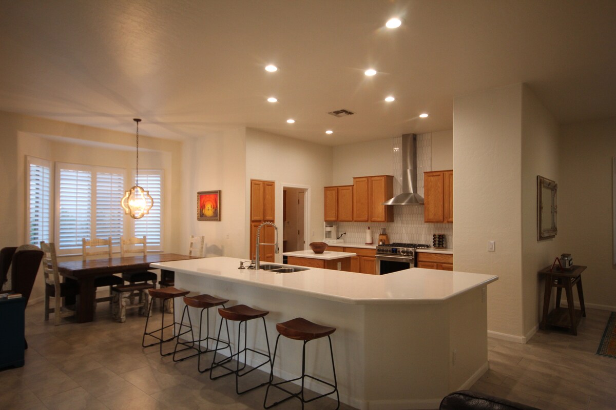 Smještena u Goodyearu, privatnoj zajednici Estrella Mountain Ranch u Arizoni, Casa Polaris je kuća s bazenom s 3 spavaće sobe i 2 kupatila koja nudi više od 1600 kvadratnih metara prostora za život, okupljanje i rekreaciju. Uživajte u prirodi dok plutate u privatnom bazenu, zapalite roštilj u dvorištu i ognjište ili idite na obližnje staze. Vežite se do barskih stolica u potpuno opremljenoj kuhinji, pogledajte svoje omiljene sportove ili predstave dostojne hrane na TV-u od 75 inča ili primajte Zoom pozive u predviđenom radnom prostoru.