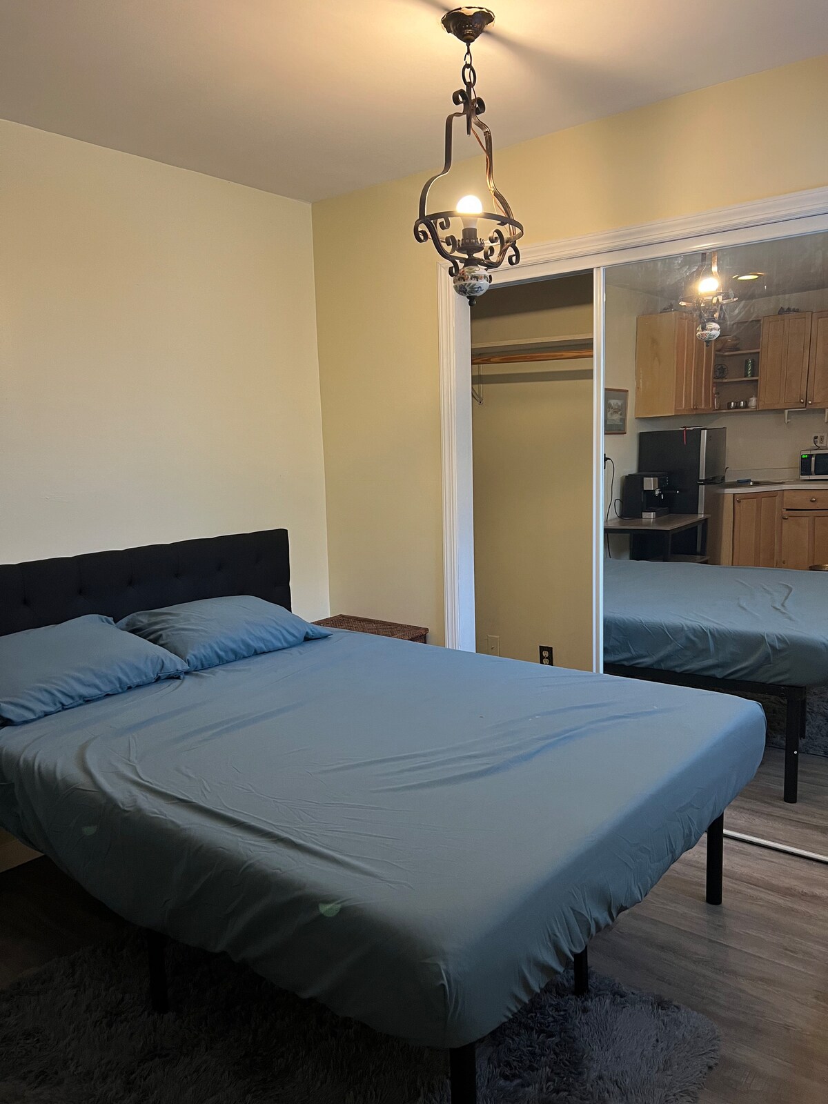 To je privatni podrum, miran smještaj. Udobno je tokom cele godine. Ima zaseban ulaz. Postoji konvertor koji se može koristiti kao hlađenje i grijanje. Zalihe kafe za čaj su dostupne besplatno. Boca za vodu i korpa sa grickalicama je njihov Wi-Fi dostupan i možete uživati u Netflix YouTube-u. Postoji jedan bračni krevet u jednoj sobi i jedan bračni krevet u drugoj sobi tako da 3 osobe mogu udobno da spavaju sa svojom privatnošću. Smještaj je udaljen 6 minuta vožnje automobilom od LIRR-a. DoorDash i Uber eats lako dostavljaju hranu.