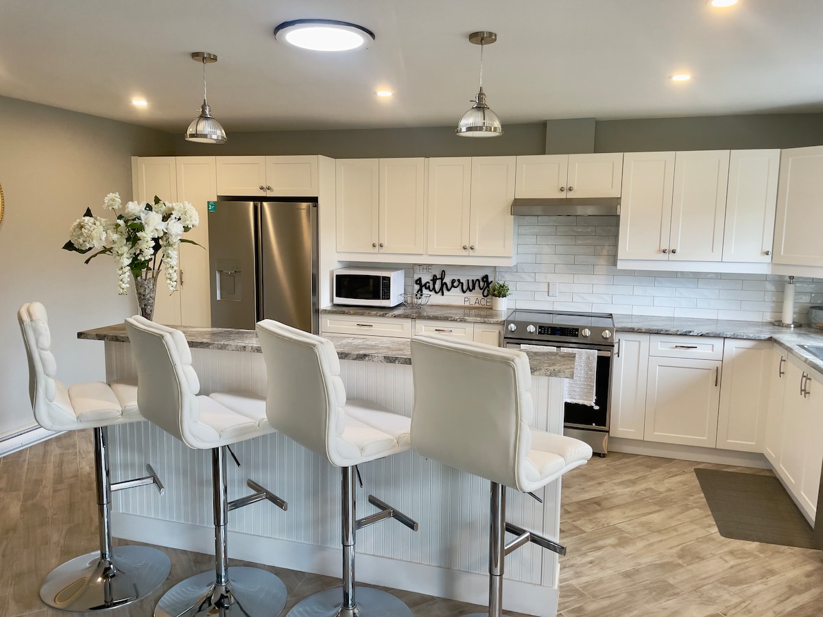 Udobno se smjestite i uživajte u dodatnom prostoru u ovom prostranom apartmanu otvorenog koncepta, koji se nalazi u centru na sjeveru okanagana, pogodan za 2-3 osobe, sa ogromnom kuhinjom, udobnim dnevnim boravkom sa električnim kaminom i satelitskom televizijom, zaspite u bračnom krevetu u ogromnoj sobi sa garderobom, sjednite i opustite se napolju ispod natkrivenog stambenog prostora u sopstvenom privatnom ograđenom dvorištu sa ognjištem za one prohladne noći.