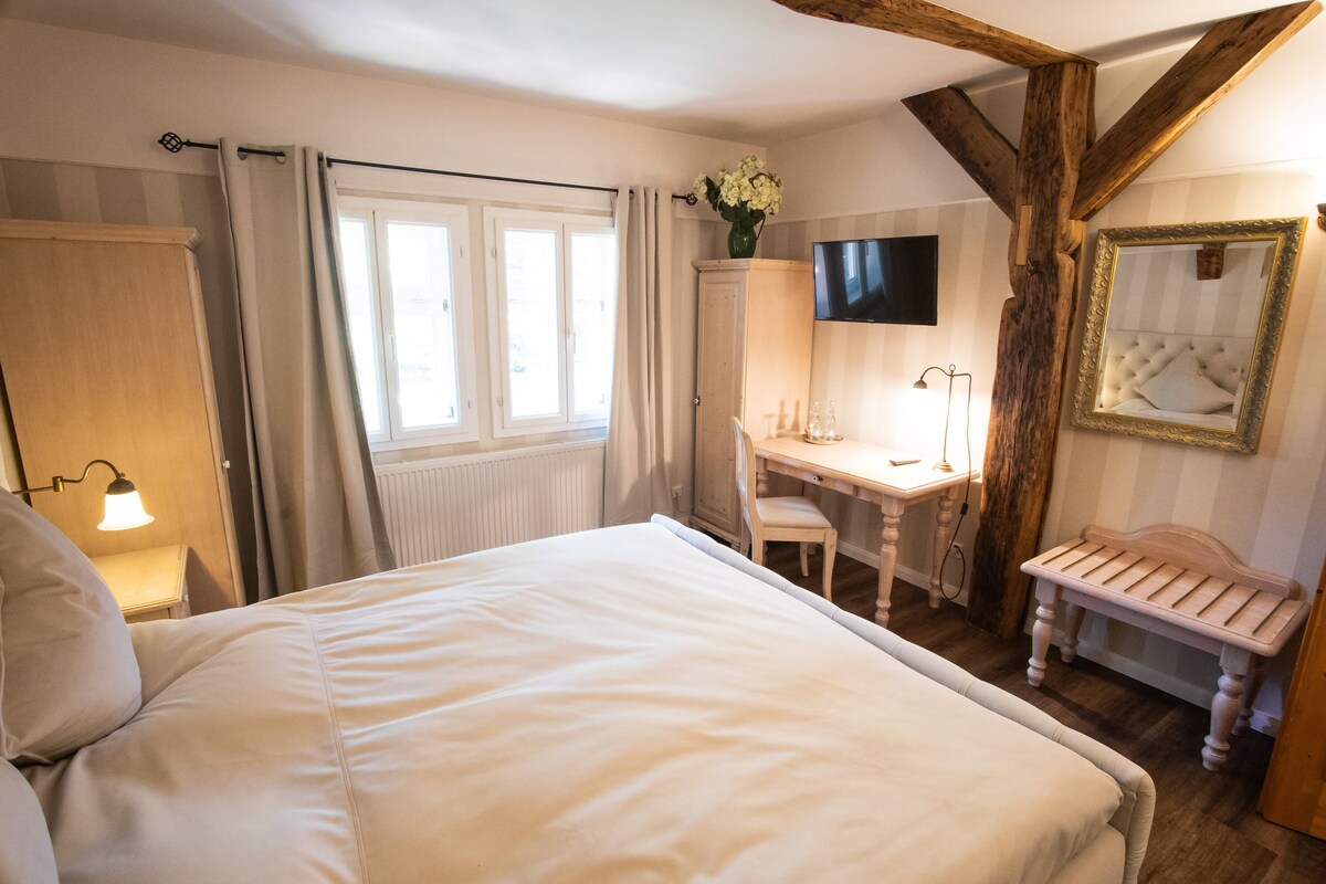Das Einzelzimmer "Gretel" verfügt über ein Boxspringbett (110 x 200 cm), einen Stuhl, eine Kommode und einen Smart-TV. Das besondere Highlight des Zimmers ist der kleine Wintergarten. An der Glasfront können Sie auf einem Sessel mit Hocker sitzen und die Aussicht auf Bach, Garten und den Blick in die Ferne genießen. Der ideale Platz, um ein wenig zu lesen oder ein Getränk zu genießen.