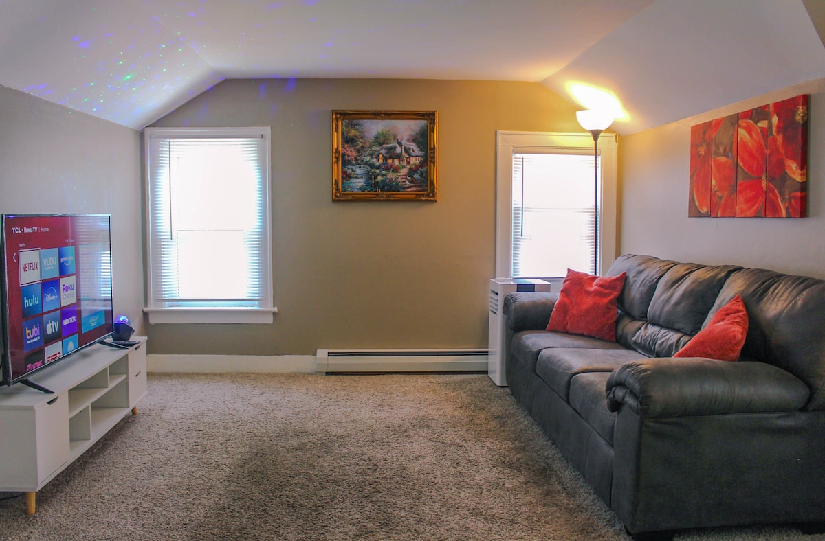 Ovaj prelepi gornji stan sa jednom spavaćom sobom nalazi se nekoliko koraka od parka Niawanda i svega što grad Tonawanda nudi. Popnite se stepenicama do svetle i prostrane spavaće sobe sa brzim internetom, pametnim televizorom, klima-uređajem, bračnim krevetom i kaučem na razvlačenje. Posvećen parking na ulici za jednu osobu i dovoljno parkinga na ulici. Smješten dvadeset minuta od Nijagarinih vodopada, dvadeset minuta od centra Bufala i stepenica do obale, ovaj centralno lociran prostor je savršen za odmor u zapadnom Njujorku.
