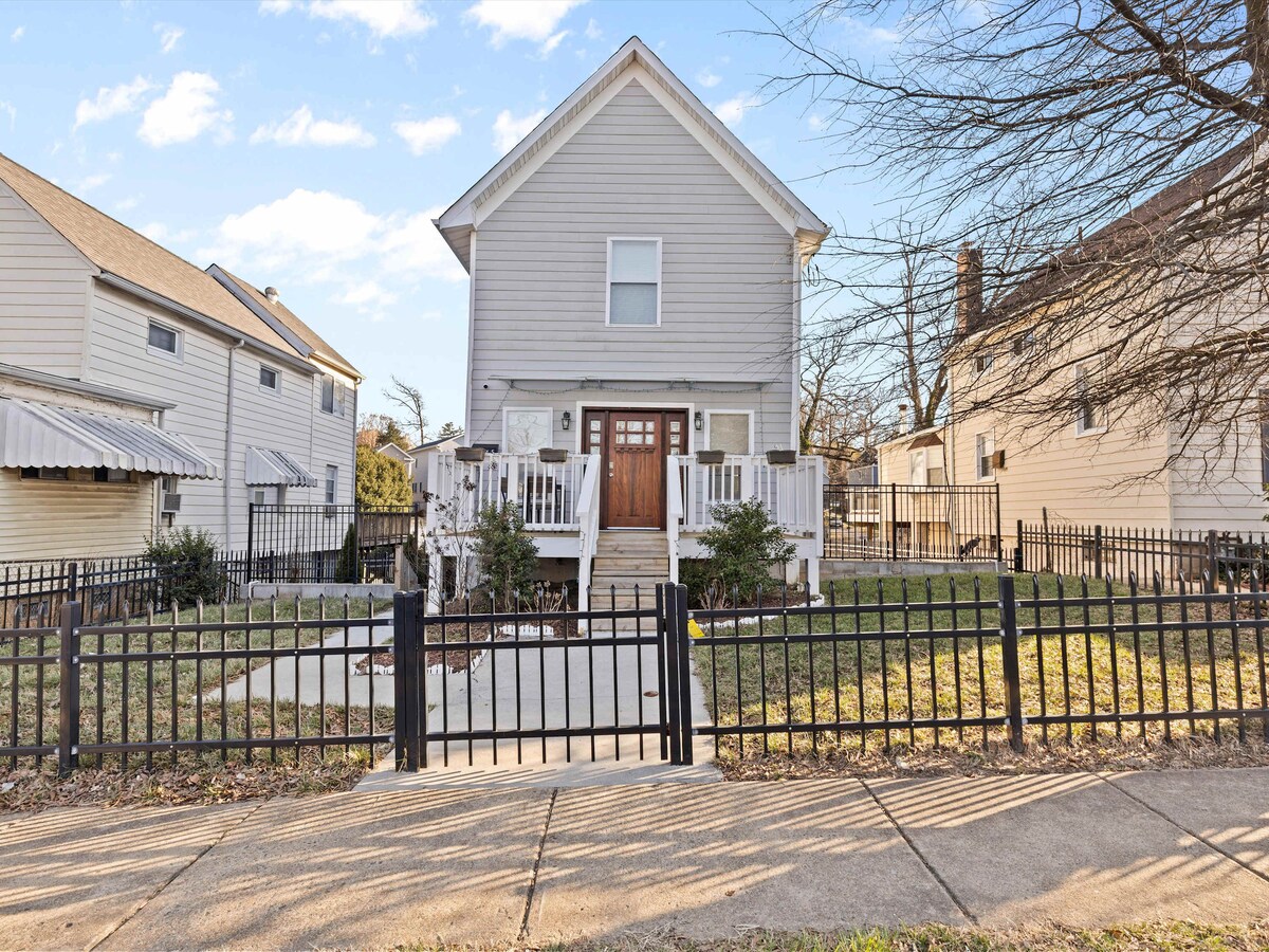 RETKA PRILIKA — spavaća soba i kupatilo na glavnom nivou bez stepenica! Dobro došli u svoje elegantno utočište u Vašingtonu! Ovaj potpuno renovirani dom sa 5 spavaćih soba i 4 kupatila nudi 3500 kvadratnih metara života otvorenog koncepta, na samo 3 minuta od metroa i 10 minuta od Bijele kuće. Uživajte u besplatnom parkingu na ulici. Savršeno za porodice ili poslovne putnike sa spavaćom sobom na glavnom spratu, profesionalnom kuhinjom, dvokrevetnim dnevnim boravcima, brzim Wi-Fi mrežom i pametnim televizorima. Rezervišite smještaj danas i doživite Vašington u udobnosti i stilu.