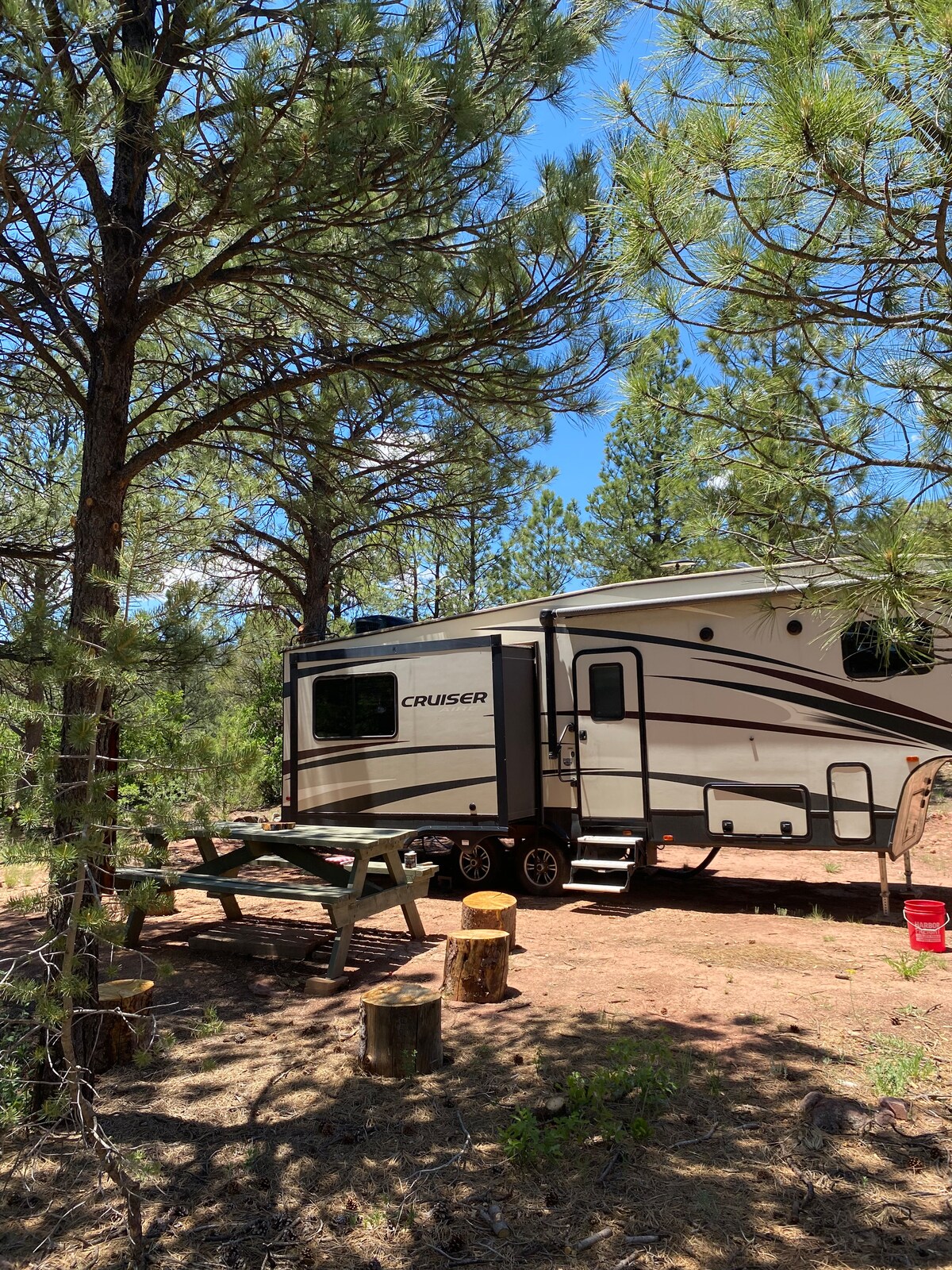 Novouređeni moderni i prostrani kamper se nalazi na privatnom ograđenom objektu od 3,5 hektara u istorijskoj i prelijepoj dolini rijeke Española, okružen je 200 godina starim stablima pamuka i trčanjem acekije. Nalazi se na samo 27 milja od Santa Fea, 24 milje od Abikiua, 43 milje od Taosa, 21 milje od Los Alamosa, 12 milja od Chimayoa i 90 milja od Albukerkija, ovaj opuštajući i dobro opremljen kamper pruža savršen odmor i bazu za boravak u severnom Novom Meksiku.