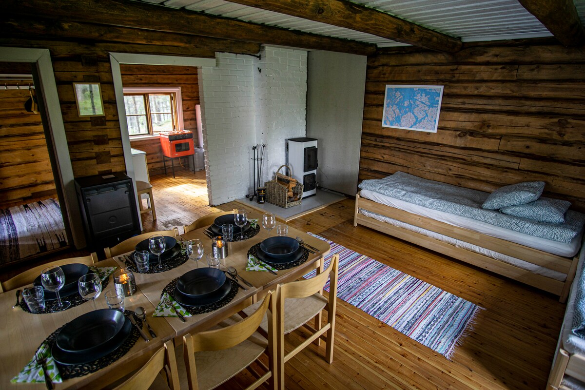 ONLY FOR THE MORE ADVENTUROUS ONES! A log cabin built in the 1960s on a small island. This is the only property on the island; there are no other cabins, houses, or anything. You are alone in peace. This is not your usual Airbnb. Here, you will have to get your own water from the well or the lake. Chop some firewood. Start a fire. But you will surely have a once-in-a-lifetime experience. This is a unique opportunity to experience a true Finnish lifestyle.