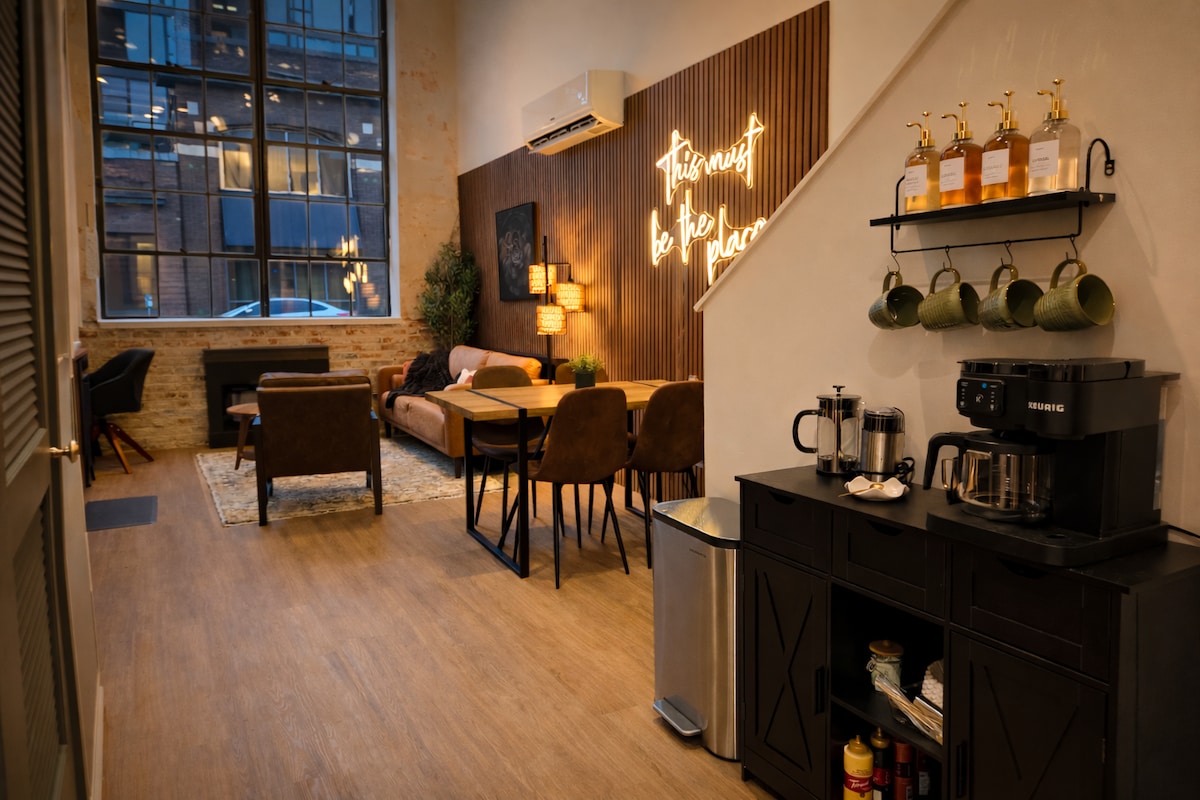 Stay in the heart of Kendall Yards in this stylish studio loft above Uprise Brewery! Walk to restaurants, shops, and the Centennial Trail. This cozy, open-concept space features a queen Murphy bed, full bath with walk-in shower, organic bedding, free WiFi, premium coffee, and local artwork by Ben Joyce. Kitchenette includes a mini fridge, microwave, toaster, and coffee maker. Note: This unit is located above a brewery, so minimal noise may be heard. Quiet hours are observed from 10 PM to 7 AM.