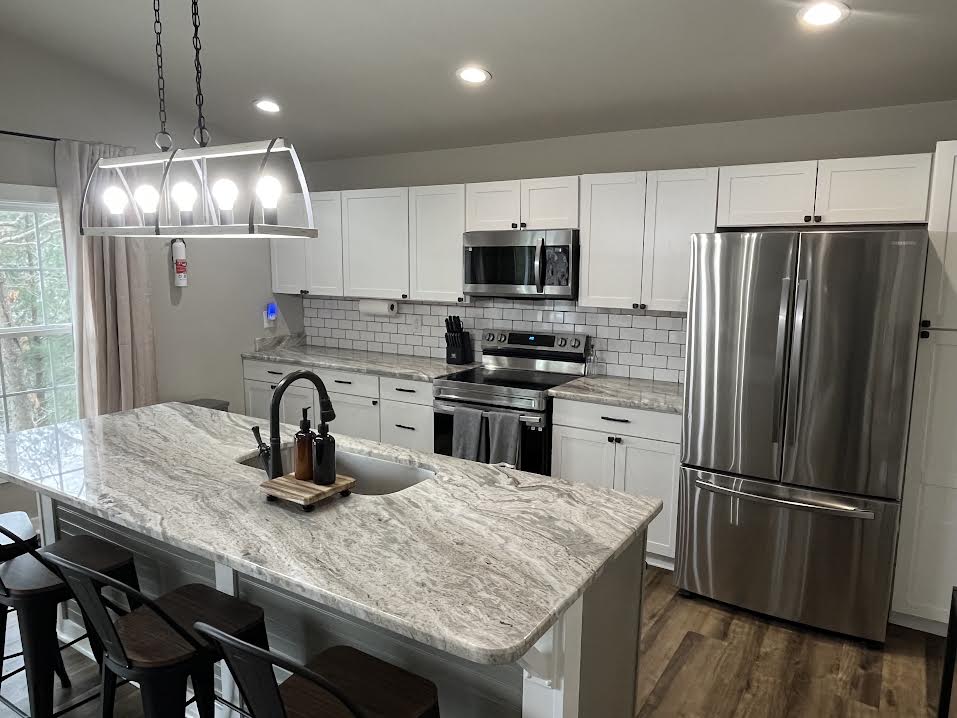 Kick back and relax in this peaceful, brand new, stylish space. Located close to town yet feels like a hidden country paradise. This unit is one of two units available at a duplex situated on 5 acres. With 10 foot ceilings this one bedroom feels so much bigger! It offers a walk in tile shower, King bed and Queen sleeper sofa, full kitchen with Quartz countertops, KitchenAid appliances, and includes full size stacked washer/dryer. We think you will love it here!