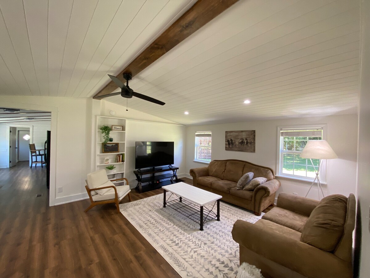 Bring the whole family to this renovated 3 BR, 2 bath home +1 BONUS ROOM, which serves as a theatre/game room with 2 queen sleeper sofas. Your family will enjoy: Coffee/beverage/snack bar Central location: Approximately 5 minutes to SC State and Claflin University, OC Tech College, Edisto Gardens, MUSC Health Orangeburg, shopping, dining, and more. Designated office space 1 king bed, 2 queen beds, plus 2 queen sleeper sofas 5 Roku Smart TV’s Smart lock for easy access High speed WiFi