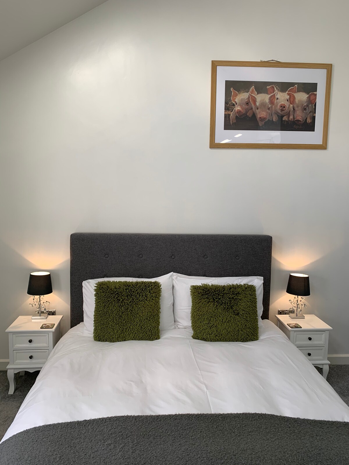Samostalni apartman za goste u prizemlju s 1 spavaćom sobom. Sa bračnim krevetom, pametnim televizorom od 43inča i besplatnim bežičnim internetom. Vrhunska egipatska posteljina, mekani peškiri i ogrtači za kupanje osiguravaju da se opustite i opustite. Luksuzna spavaća soba sa samostojećim kupatilom, mokra soba sa električnim tušem i grijanom prečkom za peškire. Odvojite trpezariju za doručak sa pripremom čaja / kafe od 24 sata i mini frižiderom.