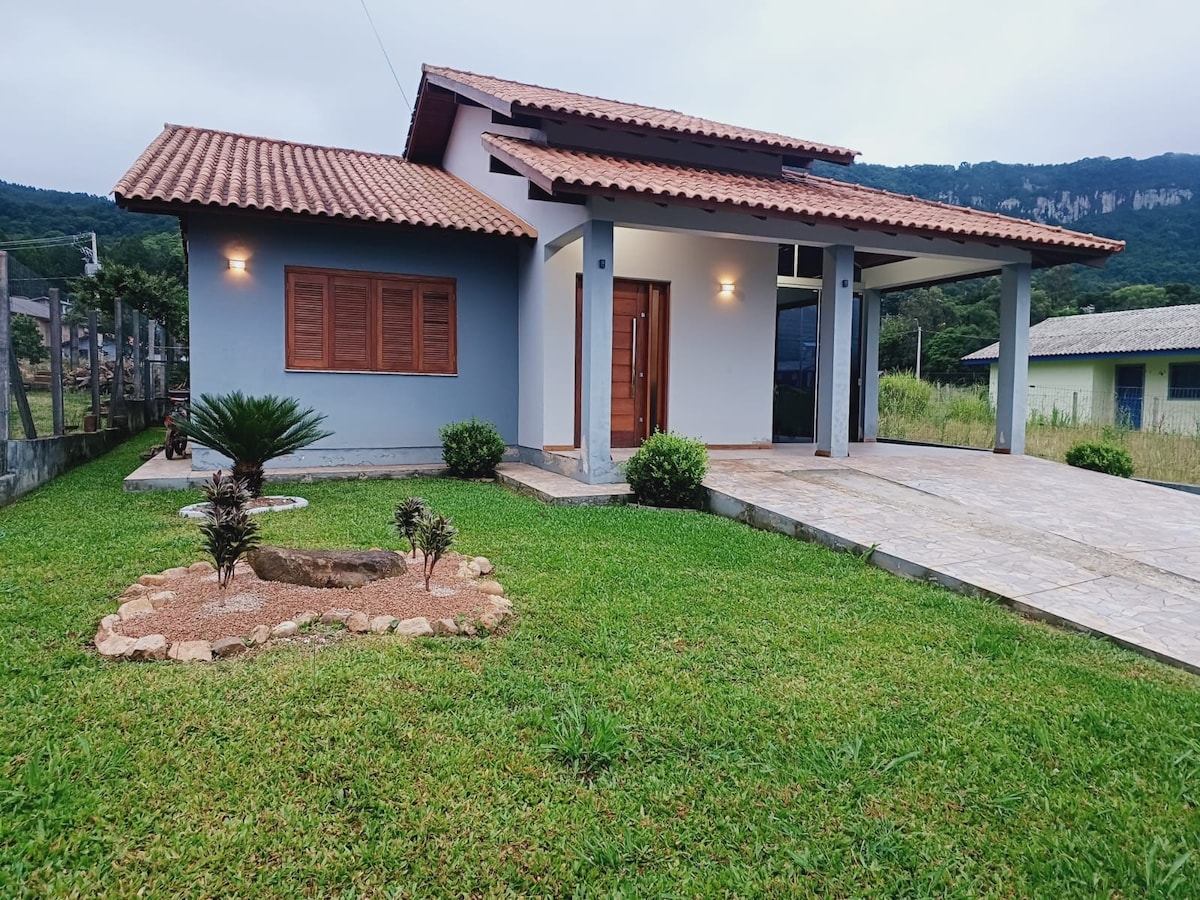 Lindo chalé na serra gaúcha em meio a natureza, com mercado e farmácia próximo. A casa fica a 25km de Gramado e 80km de Porto Alegre. A cidade possui lindas cascatas e paisagens incríveis, ótima experiência para quem gosta de contato com a natureza. Ainda na propriedade, há trilhas para fazer, opção para pescar no açude e até relaxar na beira do riacho. O chalé conta com lareira, churrasqueira e até um belo fogo de chão na área externa, proporcionando uma experiência única em meio as paisagens.